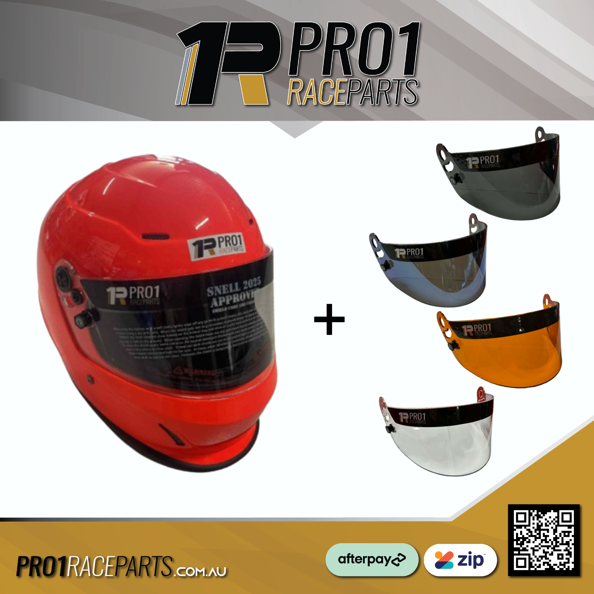 Pro1 SNELL 2025 Helmet with Replacement Visor – Fluro Orange