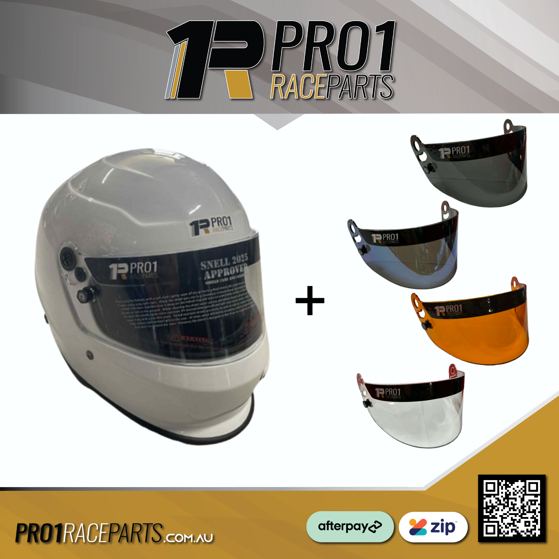 Pro1 SNELL 2025 Helmet with Replacement Visor – White